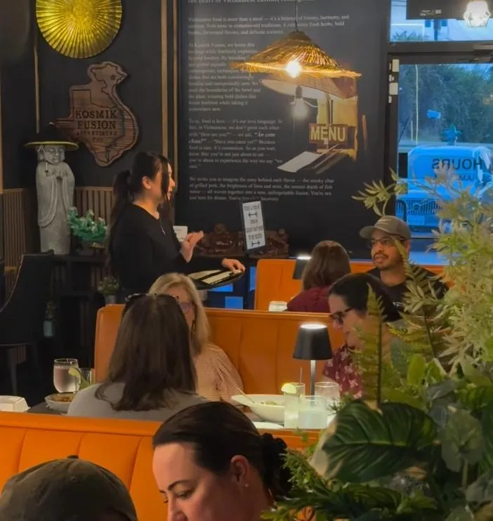 From the moment you walk in, Kosmik is a feast for the eyes. Vibrant colors, artful plating, and thoughtfully arranged dishes immediately capture attention. From the golden crisp of eggrolls to the fresh green of herbs on our vermicelli bowls, each plate is designed not just to nourish but to excite visually. The interior lighting, cozy seating, and open bar views create an environment that feels lively, warm, and inviting — every detail crafted to make your eyes linger and your anticipation build.